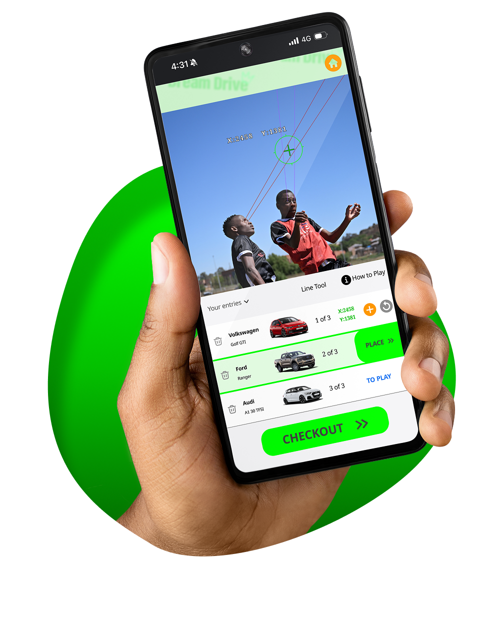 The player closest to the winning spot wins their dream car.